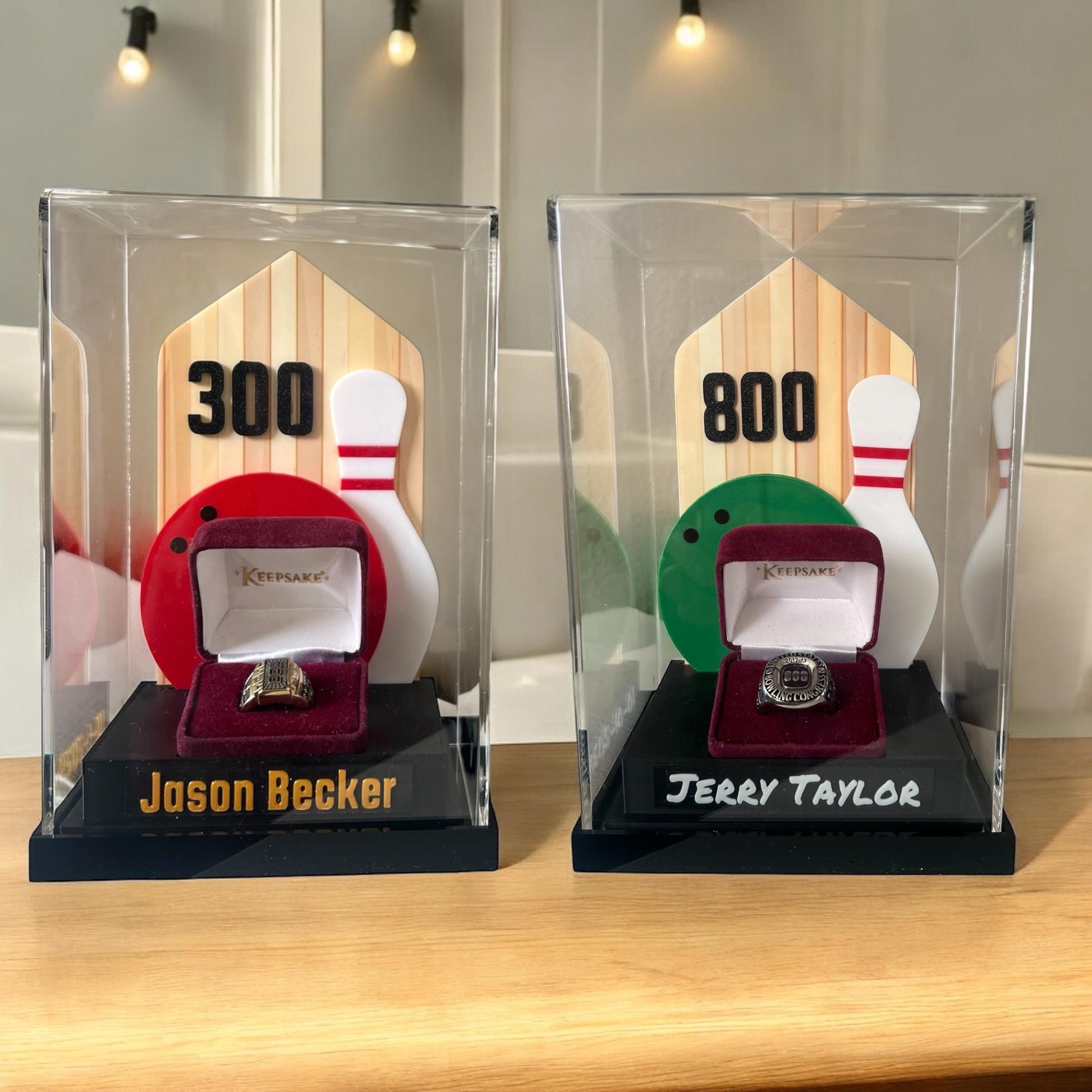 Custom Bowling Achievement Ring Holder Display 300 Game/800 Series